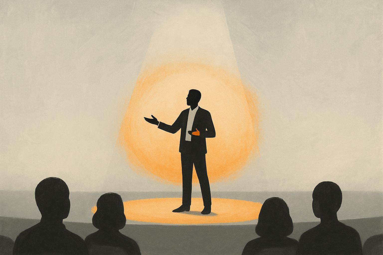Your position on stage also plays a role in how your message is received. Standing center stage or slightly forward works best for most scenarios. Avoid unnecessary pacing or fidgeting, as this can make you appear nervous. If you do move, let it serve a purpose - such as stepping forward to highlight an important point or moving closer to the audience to build connection. For your final statement, stay still, maintain eye contact, and let your presence reinforce your words.